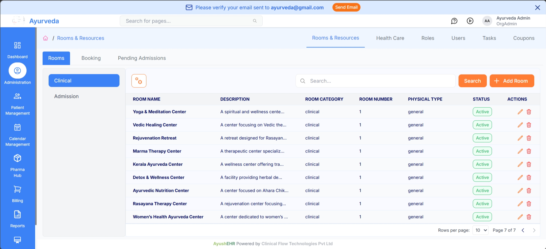 Clinical Flow Technologies Private Limited for Ayurveda, Yoga, and wellness practitioners. aligned with global standards like openEHR andFHIR.Uses standard terminologies SNOMED CT, ICD-11 and LOINC to ensure compliance with Indian EHR Standards and enable seamless interoperability with other healthtech systems.